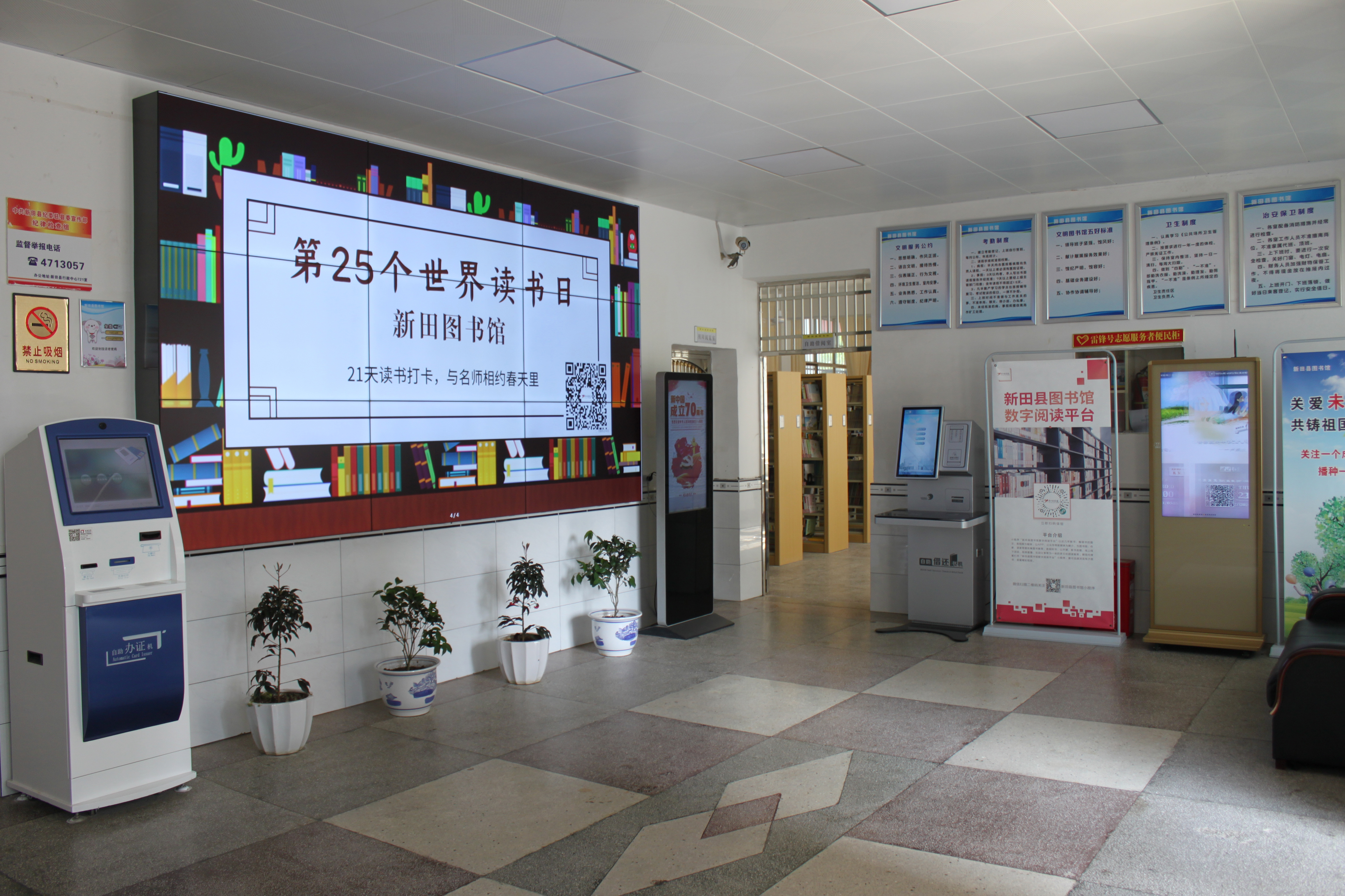 新田县图书馆的前身是新田民众图书馆。民众图书馆建于民国19年(1930年),设图书借阅室、报刊阅览室,馆藏图书300余种。